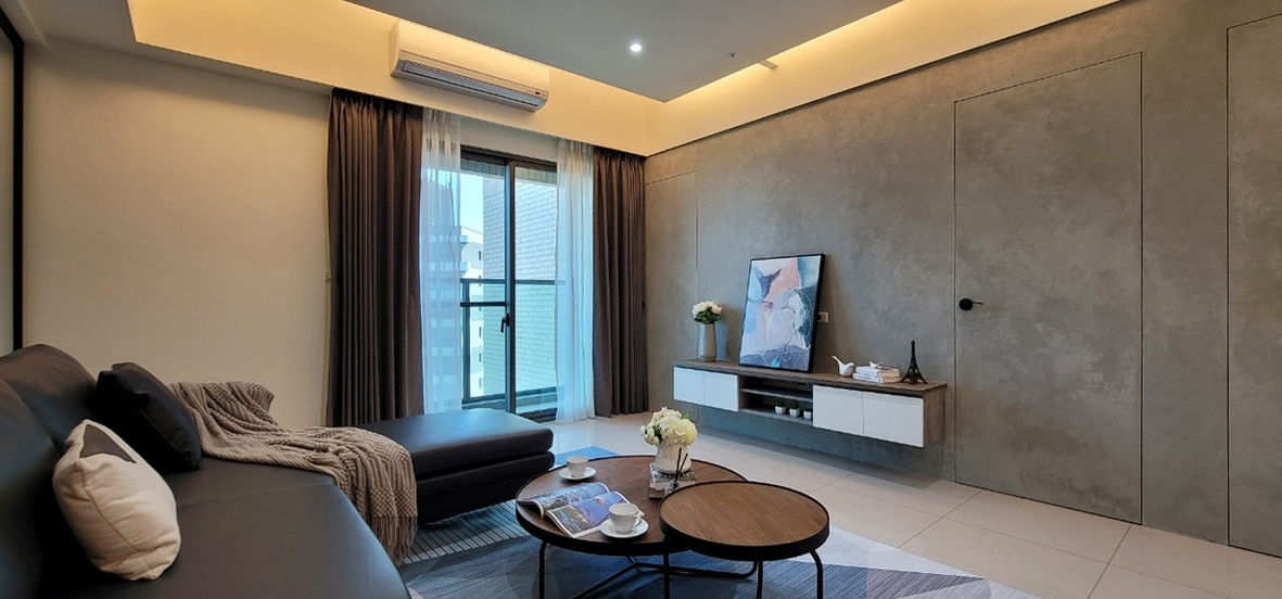 這間客廳運用了清水模的特殊漆,融合了北歐的簡約美學與輕工業風格,營造出一個既時尚又溫暖的空間。穿著著家的舞蹈。主臥室以白色門板為主,明亮的色調讓整體空間視野開闊而舒適,為夫妻提供了一個寧靜的避風港。兒童房特意留著寬敞的活動空間,滿足孩子的學習和遊戲需求。書房則配置了臥榻,當工作累了,可以在這個獨立而安靜的空間中稍作休息,讓思緒重新充電,激發更多創意。整體設計在每個細節中都體現出專業與用心,為家庭成員創造了一個充滿愛與記憶的港灣。